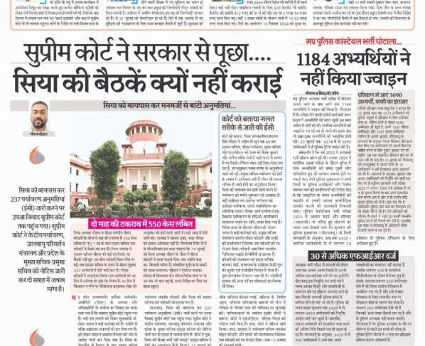 सिया को बायपास कर मनमर्जी से बांटी अनुमतियां… गौरव चौहान/बिच्छू डॉट कॉम। मप्र स्टेट एनवायरमेंट इम्पैक्ट असेसमेंट अथॉरिटी (सिया) के अध्यक्ष और अधिकारियों के वर्चस्व का विवाद इस कदर गहरा…