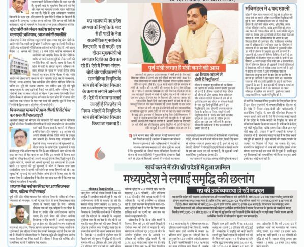मप्र में हो सकता है मंत्रिमंडल विस्तार! गौरव चौहान मप्र में भाजपा सत्ता और संगठन में नई जमावट करने की तैयारी कर रही है। वर्तमान में सरकार का फोकस निगम-मंडल-बोर्ड…