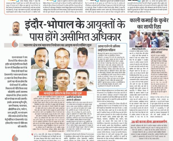 महानगर क्षेत्र एवं महानगर नियोजन का आयुक्त बनने लॉबिंग शुरू गौरव चौहान मप्र के 2 शहर इंदौर और भोपाल को मेट्रोपॉलिटन सिटी के रूप में विकसित करने की तैयारी चल…