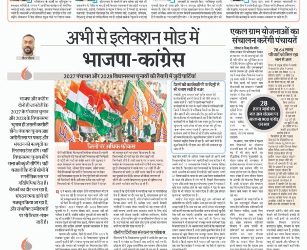 2027 पंचायत और 2028 विधानसभा चुनावों की तैयारी में जुटी पार्टियां गौरव चौहान मप्र में भाजपा और कांग्रेस दोनों पार्टियां मिशन मोड में काम कर रही हैं। संगठन का गठन…