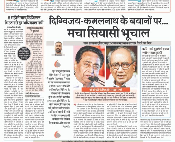 पांच साल बाद फिर बाहर आया कमलनाथ सरकार गिरने का जिन्न गौरव चौहानमप्र में कमलनाथ सरकार गिरने का जिन्न पांच साल बाद फिर बाहर आया। इसे लेकर पूर्व सीएम दिग्विजय…