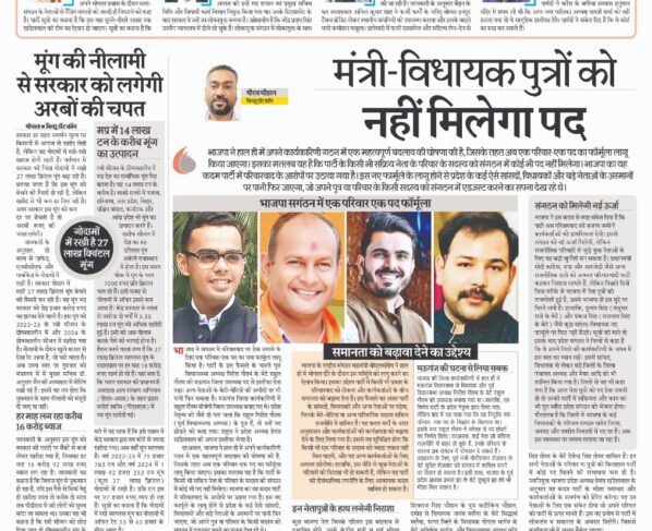 भाजपा सगंठन में एक परिवार एक पद फॉर्मूला गौरव चौहान/बिच्छू डॉट कॉम। भाजपा ने संगठन में परिवारवाद पर रोक लगाने के लिए एक परिवार-एक पद का नया फार्मूला लागू किया…