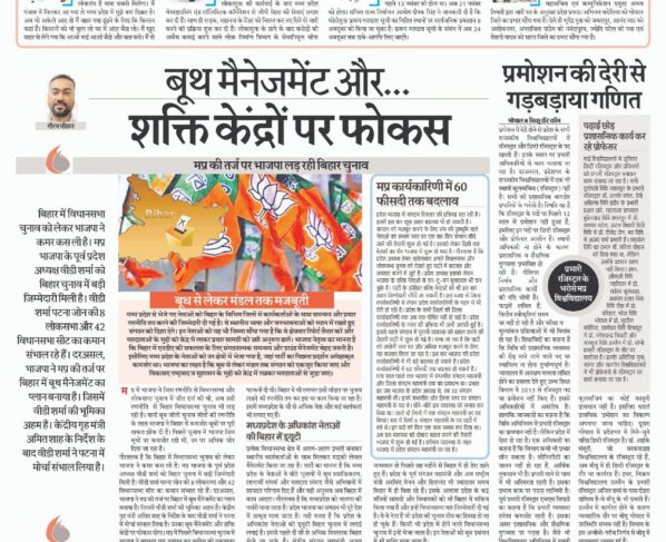 मप्र की तर्ज पर भाजपा लड़ रही बिहार चुनाव कमजोर बूथों पर भाजपा ने झोंकी पूरी ताकत गौरव चौहान मप्र में भाजपा ने जिस रणनीति से विधानसभा और लोकसभा चुनाव…