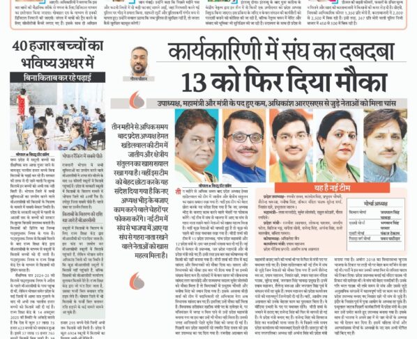 उपाध्यक्ष, महामंत्री और मंत्री के पद हुए कम, अधिकांश आरएसएस से जुड़े नेताओं को मिला चांस गौरव चौहान तीन महीने से अधिक समय बाद प्रदेश अध्यक्ष हेमत खंडेलवाल की टीम…
