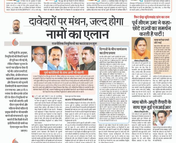 राजनीतिक नियुक्तियों का काउंटडाउन शुरू गौरव चौहान मप्र में आने वाले दिनों में जल्द ही राजनीतिक नियुतियां की जाएंगी। इसके लिए दावेदारों के नामों पर मंथन हो चुका है। भाजपा…