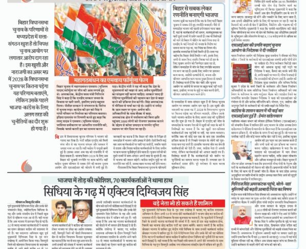 भाजपा में भरपूर उत्साह, कांग्रेस में निराशा का भाव गौरव चौहान/भोपाल/बिच्छू डॉट कॉम। बिहार में विधानसभा चुनाव परिणाम ने भाजपा को गदगद कर दिया है। पार्टी सहित एनडीए को मिली…