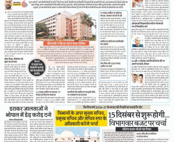 -वित्तीय वर्ष 2026-27 के बजट की तैयारियां पकड़ेंगी जोर-विभागों के अपर मुख्य सचिव, प्रमुख सचिव और सचिव स्तर के अधिकारी करेंगे चर्चा भोपाल/बिच्छू डॉट कॉम। मप्र में विधानसभा के शीतकालीन…