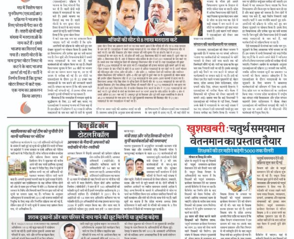 शिक्षकों की हर महीने बढ़ेगी 5000 तक सैलरी भोपाल/बिच्छू डॉट कॉम। प्रदेश के स्कूलों में पढ़ा रहे शिक्षकों को चतुर्थ समयमान-क्रमोन्नत वेतनमान देने की तैयारी चल रही है। स्कूल शिक्षा…