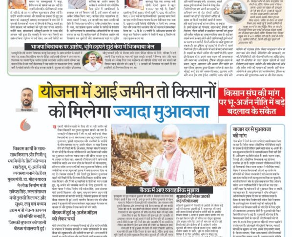 योजना में आई जमीन तो किसानों को मिलेगा ज्यादा मुआवजा