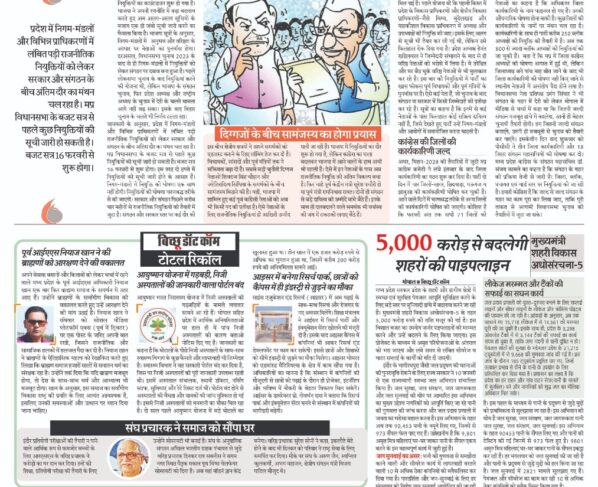 मुख्यमंत्री शहरी विकास अधोसंरचना-5 भोपाल/बिच्छू डॉट कॉममध्य प्रदेश सरकार प्रदेश के शहरी और ग्रामीण क्षेत्रों में स्वच्छ एवं सुरक्षित पेयजल आपूर्ति सुनिश्चित करने के लिए बड़े स्तर पर बुनियादी ढांचे…