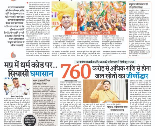 जल गंगा संवर्धन अभियान की प्रदेशभर में होगी शुरुआत भोपाल/बिच्छू डॉट कॉममप्र शासन के नगरीय विकास एवं आवास विभाग द्वारा जल गंगा संवर्धन अभियान-2026 में प्रदेश की जल संपदा को…