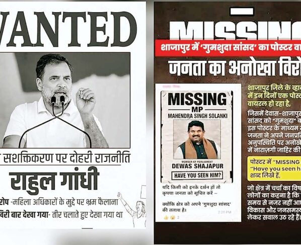 महिला आरक्षण बिल गिरने पर शाजापुर में पोस्टर वॉर… राहुल गांधी मध्यप्रदेश में वांटेड