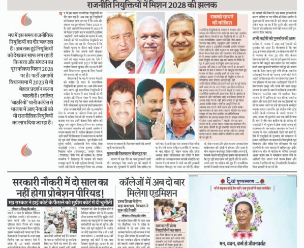 राजनीति नियुक्तियों में मिशन 2028 की झलक गौरव चौहान मप्र में इस समय राजनीतिक नियुक्तियों का दौर चल रहा है। अब तक हुई नियुक्तियों को देखकर साफ लग रहा है…