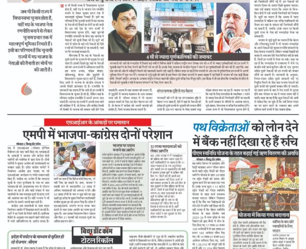 पीएम स्वनिधि योजना के तहत बढ़ाई गई ऋण वितरण की अवधि भोपाल/बिच्छू डॉट कॉममप्र समेत देशभर में हाथठेला और रेहड़ी चलाकर अपना जीवन यापन करने वाले स्ट्रीट वेंडरों को पीएम…