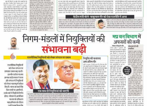 राजनीतिक नियुक्तियों को लेकर संगठन पर दबाव गौरव चौहान मप्र में भाजपा के नेताओं का निगम-मंडलों में नियुक्ति का लंबा इंतजार…