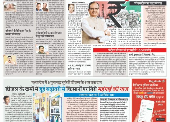 मध्यप्रदेश में 3 गुना बढ़ चुके हैं डीजल के अब तक दामभोपाल/अपूर्व चतुर्वेदी/बिच्छू डॉट कॉम। पेट्रोलियम पदार्थों में रिकार्ड तोड़…