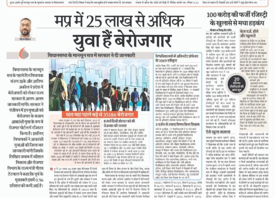 विधानसभा के मानसून सत्र में सरकार ने दी जानकारी गौरव चौहानमप्र में 25 लाख 68 हजार युवा बेरोजगार हैं जिन्हें…