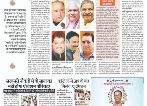 राजनीति नियुक्तियों में मिशन 2028 की झलक गौरव चौहान मप्र में इस समय राजनीतिक नियुक्तियों का दौर चल रहा है।…
