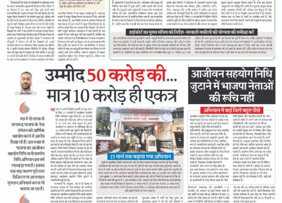 आजीवन सहयोग निधि जुटाने में भाजपा नेताओं की रूचि नहीं गौरव चौहानभाजपा ने अपने नियमित खर्चों को पूरा करने के…