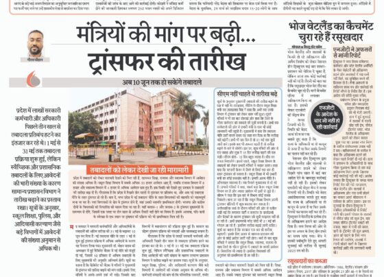 अब 10 जून तक हो सकेंगे तबादले गौरव चौहान/बिच्छू डॉट कॉम। मप्र सरकार ने सरकारी कर्मचारियों और अधिकारियों के तबादलों…