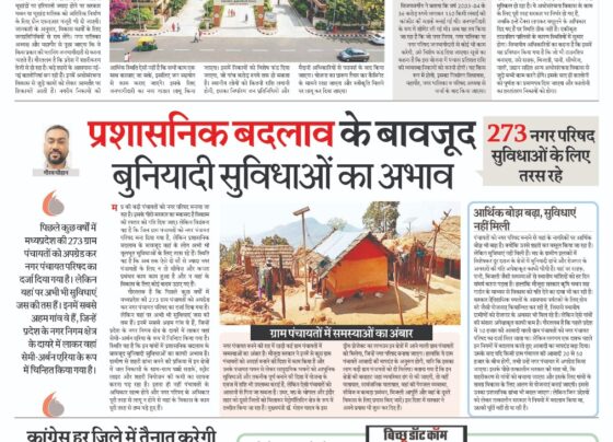 प्रशासनिक बदलाव के बावजूद बुनियादी सुविधाओं का अभाव गौरव चौहानमप्र की बड़ी पंचायतों को नगर परिषद बनाया जा रहा है।…