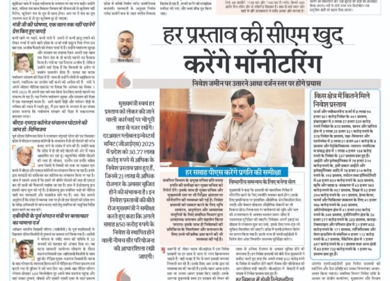 निवेश जमीन पर उतारने आधा दर्जन स्तर पर होंगे प्रयास गौरव चौहानमुख्यमंत्री डॉ. मोहन यादव जीआईएस में प्राप्त निवेश प्रस्तावों…
