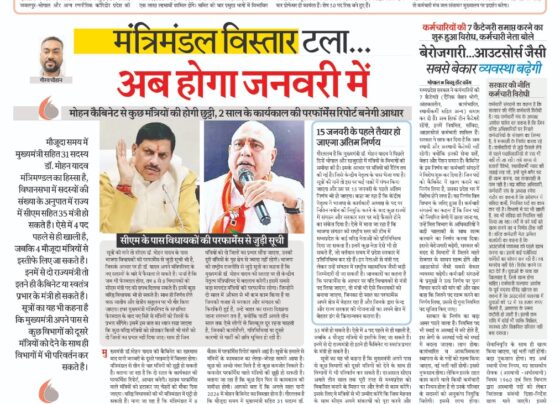 मोहन कैबिनेट से कुछ मंत्रियों की होगी छुट्टी, 2 साल के कार्यकाल की परफॉर्मेंस रिपोर्ट बनेगी आधार गौरव चौहान मुख्यमंत्री…