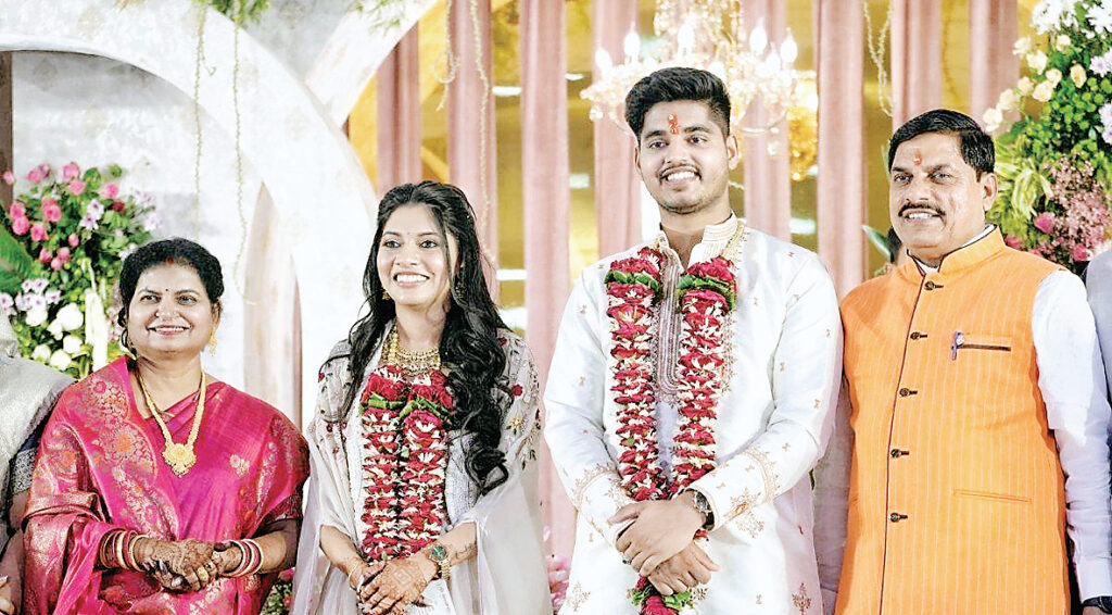 मध्यप्रदेश के सीएम डॉ. मोहन यादव के बेटे अभिमन्यु और बहू इशिता रविवार को सांवरा खेड़ी में होने वाले सामूहिक सम्मेलन में विवाह बंधन में बंधेंगे। सीएम ने अपने बेटे की शादी सामूहिक सम्मेलन में कर सादगी का परिचय दिया है। इसकी चर्चा सभी ओर हो रही है। सीएम के बेटे-बहू के साथ कुल 22 जोड़े सामूहिक विवाह कार्यक्रम में एक साथ फेरे लेंगे। इस दौरान कई वीवीआईपी के आने की संभावना जताई जा रही है। प्रदेश के मुख्यमंत्री के छोटे बेटे की 30 नवंबर को होने वाली शादी की चर्चा पूरे प्रदेश में हो रही है। वाकणकर ब्रिज के समीप सांवरा खेड़ी में सामूहिक विवाह सम्मेलन में होने वाले कार्यक्रम में देश भर के 8 राज्यपाल, 11 मुख्यमंत्री लगभग 25 संतों को आमंत्रित किया है।