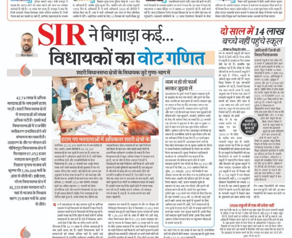 शहरी विधानसभा क्षेत्रों के विधायक जुटे गुणा-भाग में गौरव चौहानमप्र में एसआईआर के बाद मतदाता सूची के प्रारंभिक प्रकाशन ने कई विधायकों को परेशानी में डाल दिया है। खासकर शहरी…