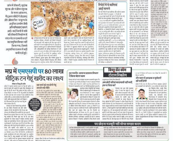 ठेकेदारों-अधिकारियों ने लगाई सरकार को 1200 करोड़ की चपत गौरव चौहान/भोपाल/बिच्छू डॉट कॉम। मप्र विधानसभा में पेश की गई भारत के नियंत्रक एवं महालेखा परीक्षक (सीएजी) की रिपोर्ट में विभागों…