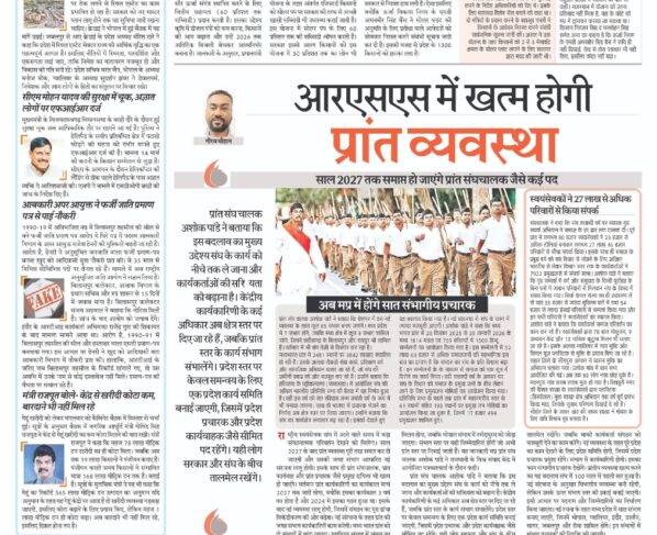साल 2027 तक समाप्त हो जाएंगे प्रांत संघचालक जैसे कई पद गौरव चौहानराष्ट्रीय स्वयंसेवक संघ में आने वाले समय में बड़ा संगठनात्मक परिवर्तन देखने को मिलेगा। साल 2027 के बाद…