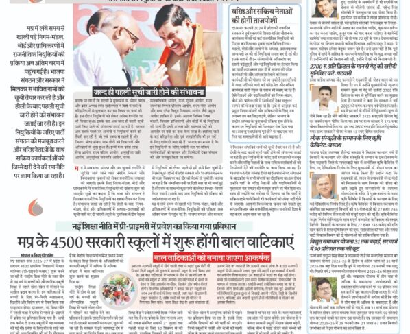 राजनीतिक नियुक्तियों की प्रक्रिया अब अंतिम चरण में गौरव चौहानमप्र में अब सत्ता, संगठन और संघ चुनावी रणनीति में जुटेंगे। आगे आने वाले नगरीय निकाय और विधानसभा चुनावों को लेकर…