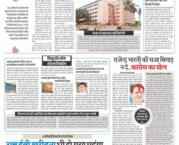 गेंहू उपार्जन की तारीख बढ़ाकर फंस गए अफसर भोपाल/बिच्छू डॉट कॉम। अमेरिका-इजरायल और ईरान युद्ध का असर मध्य प्रदेश के किसानों पर भी दिखाई दे रहा है। गेहूं खरीदी के…